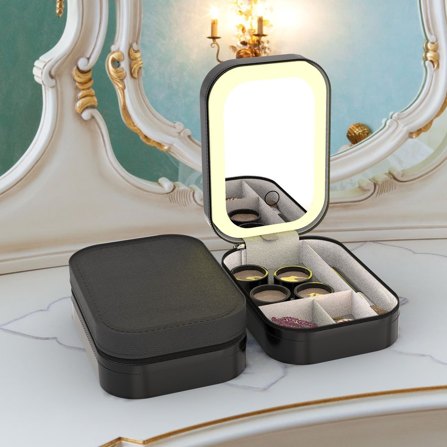 *Makeup Bag With LED Mirror*:4 Various compartments is specifically designed to accommodate different sizes and types of cosmetics,providing well protection and great fitness and preventing them from broken and dripping. Our compact and portable makeup bag with included LED mirror helps you maintain flawless makeup anywhere you go. Suitable for business trip,travel,hotel and office.
